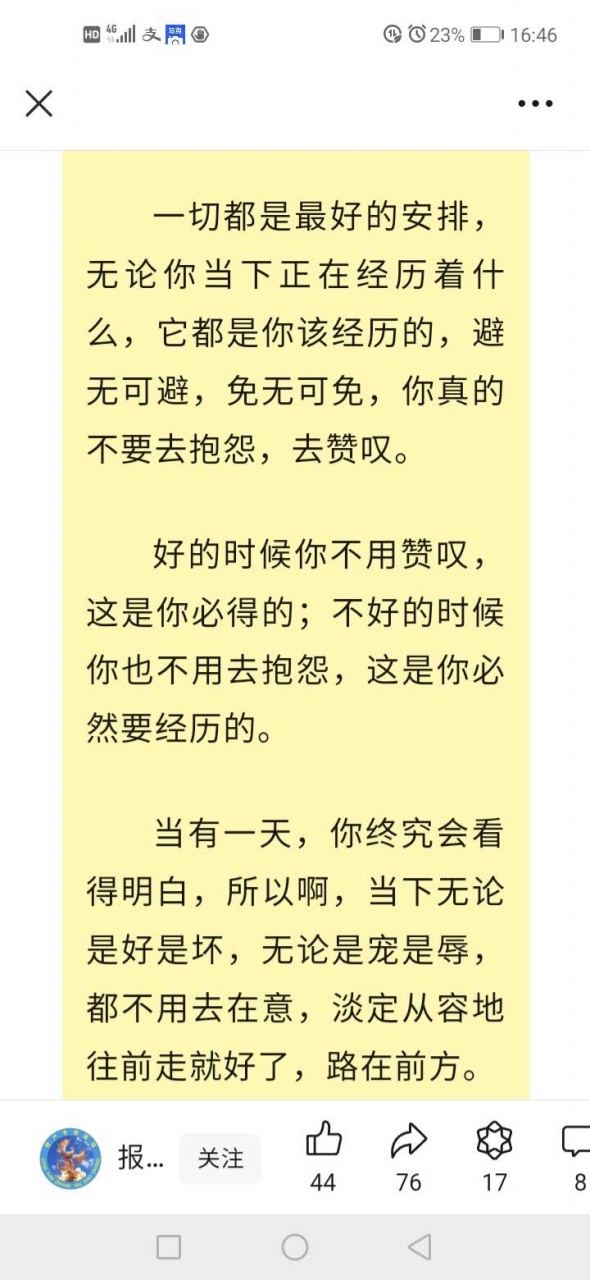 更新了一条心情: 索达吉上师:如今二三十岁的人,学习一下无常观非常好。因为在这个年龄段,很多人最执著的就是感情,假如感情上出现了变故,自己就会痛不欲生。但若明白了无常之理,即使没得到或者失去了最心爱的人,心里也会有所准备,知道一切皆为“无常”,可用这两个字来控制自己。 全文