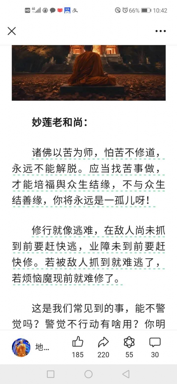 更新了一条心情: 妙莲老和尚:诸佛以苦为师,怕苦不修道,永远不能解脱。应当找苦事做,才能培福舆众生结缘,不与众生结善缘,你将永远是一孤儿呀! 全文