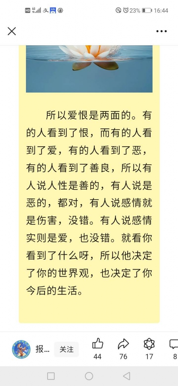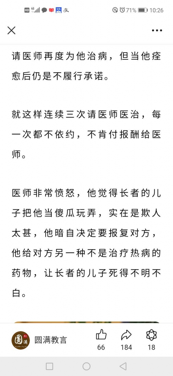 更新了一条心情: 佛陀要传递的重点是:当别人对不起我们的时候,千万不要报复对方,一旦我们采取报复的行动,就如同手持一把无柄的双刃利剑,伤人的同时也伤了自己,因为“害人终害己”。 全文