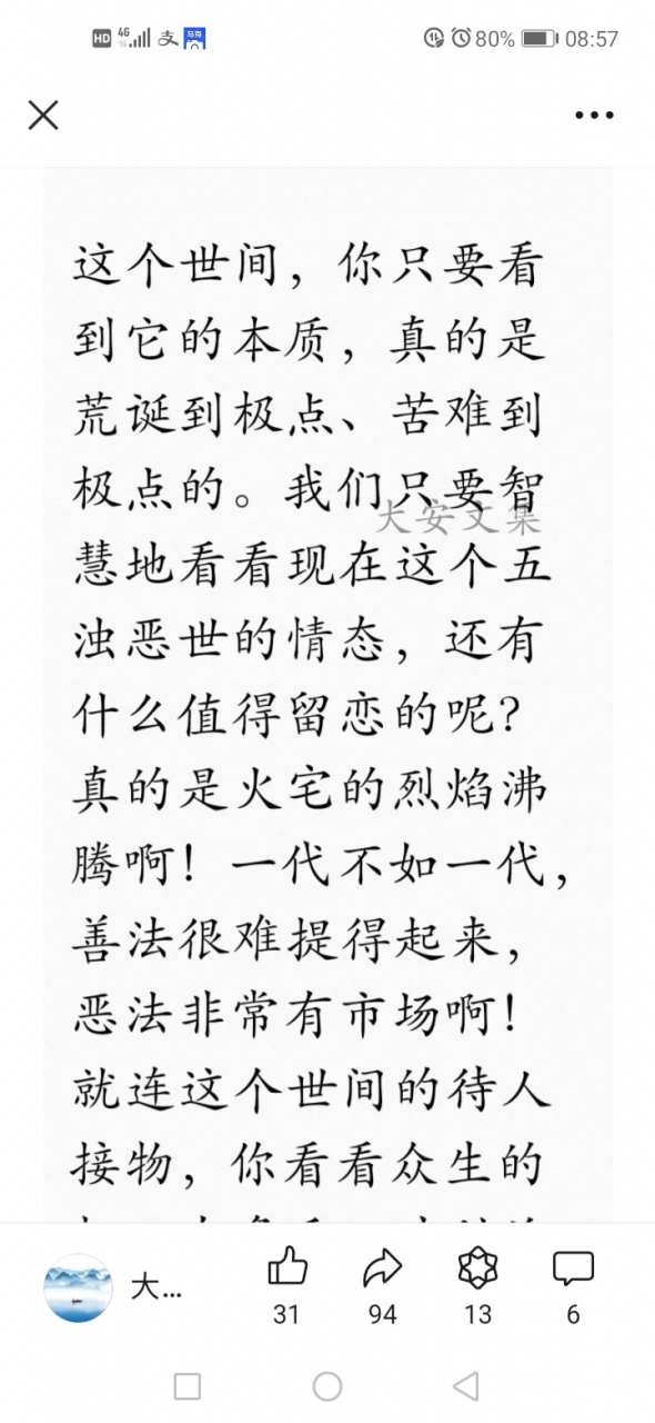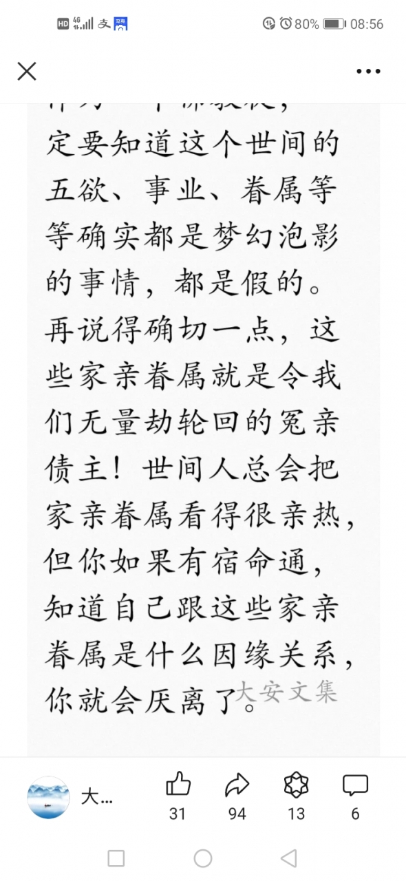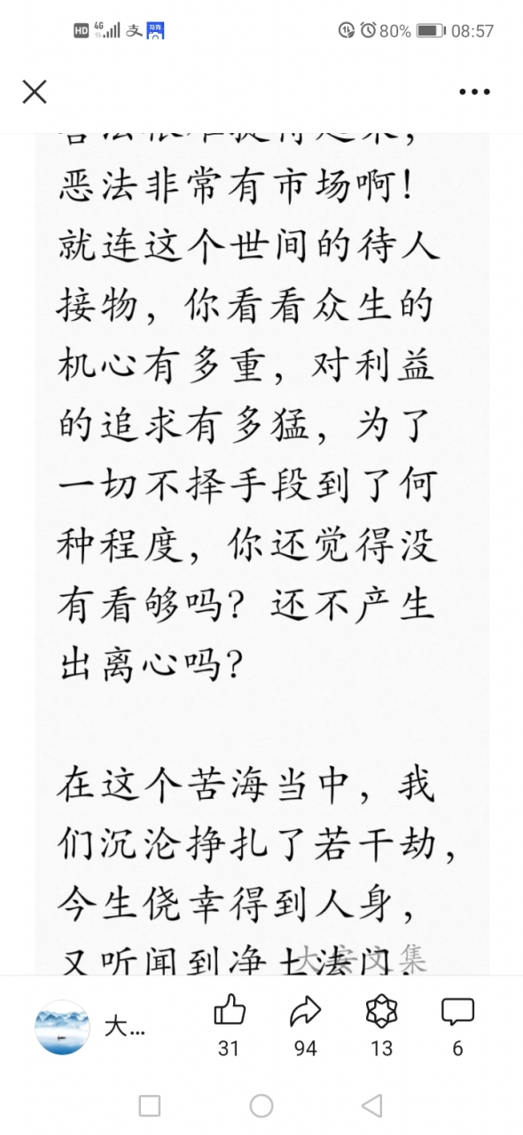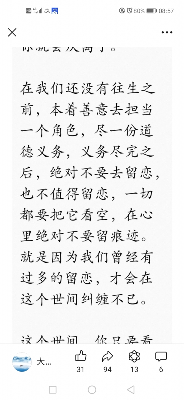更新了一条心情: 我们已经在苦海中苦苦的挣扎了若干劫了,还有什么好留恋的?如果有了宿命通,知道那些家亲眷属,或者爱得死去活来的人与自己的因缘关系,你还会放不下吗?这个世间荒诞之极呀,今生还不想去西方净土,还待何时耶?我等众生,思之思之。归去来兮。。。。 全文