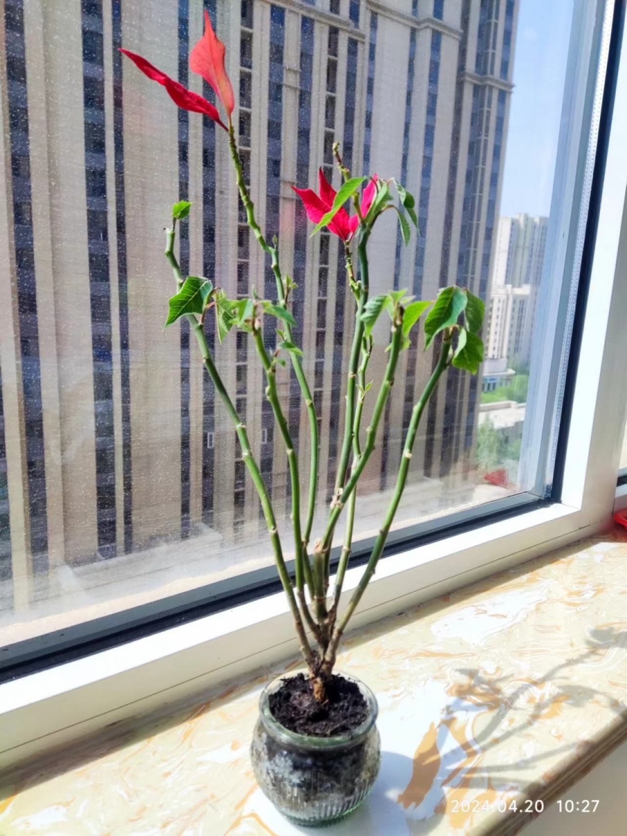 更新了一条心情: 你这个孩子……大盆的时候不好好长,耍脾气,秃成几片红叶了,本想扔了你……把你的大盆给了别的花,随手栽了一玻璃杯子,你又发了新芽长了几片绿叶,杯子打碎了……给你安一小玻璃罐,你这志气一下上来了吗? 环境越差,长得越好,你真是像极了我啊,一个字,服 全文