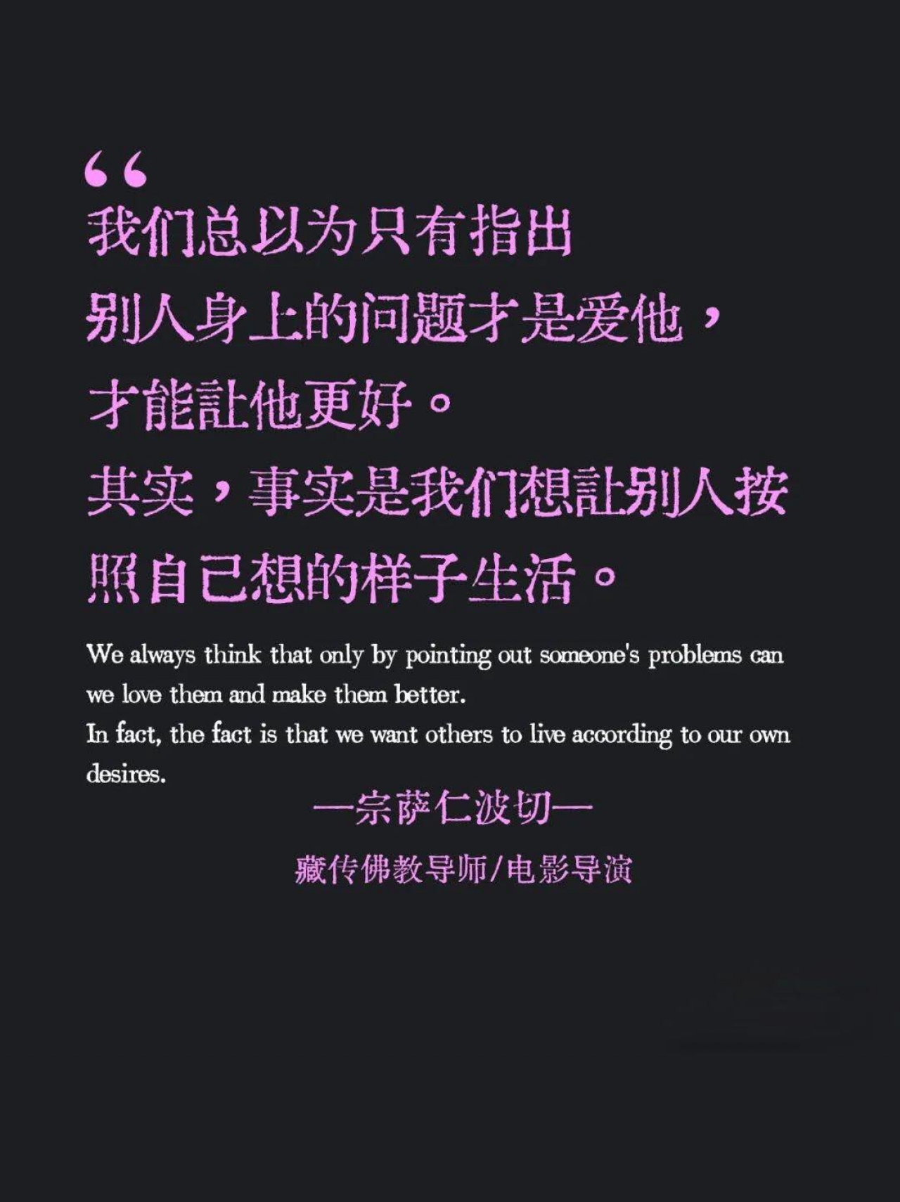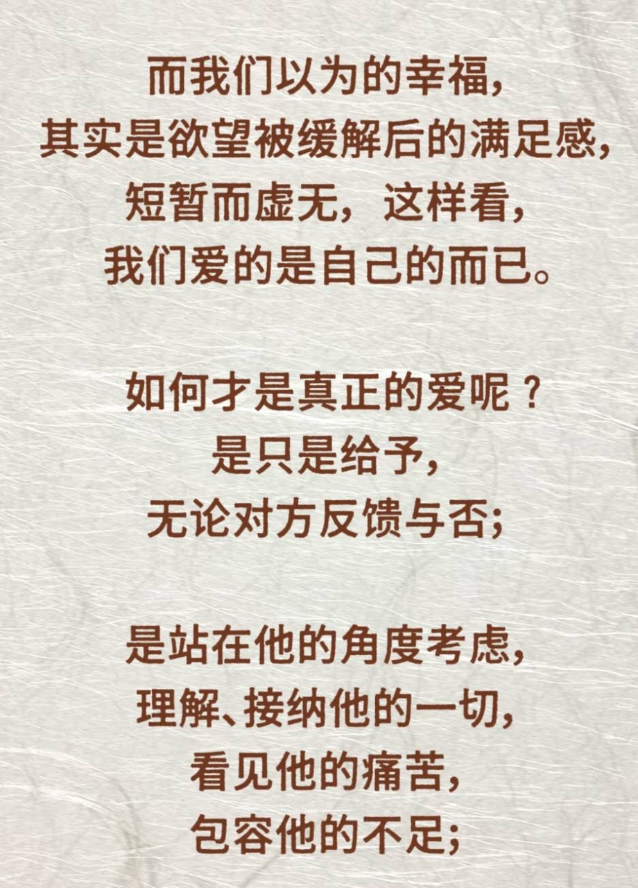 更新了一条心情: 其实,爱一个人,往往是建立在占有的基础上。一旦他对你不好,或者他变心了,自己无法再拥有他了,这时候会特别痛苦。假如你对他的爱无有条件,只要他好,你就幸福,那彼此之间的关系再怎么样,你也不可能受到刺激或创伤。所以,爱情到底是爱自己,还是爱对方?这个需要好好观察一下。 全文